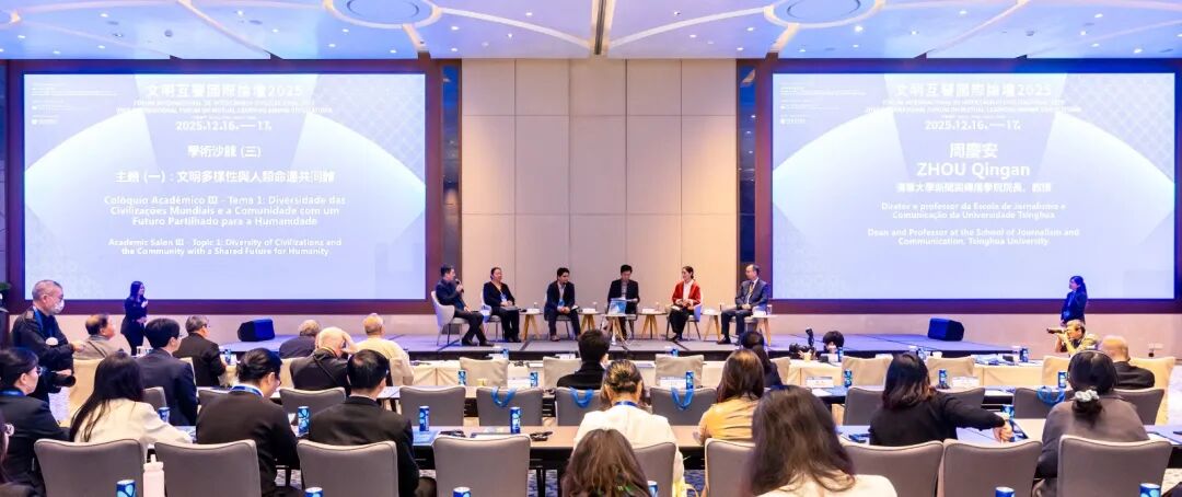 ▲清华大学新闻与传播学院院长、教授周庆安,中国人民大学国际关系学院教授、国际发展研究所所长崔守军,澳门理工大学人文及社会科学学院院长林发钦,突尼斯迦太基大学助理教授哈利德 Elhaj Ahmed Khaled,中国社会科学院中国历史研究院历史理论研究所中外文明比较研究室主任、研究员董欣洁,布宜诺斯艾利斯大学哲学与文学学院及社会科学学院中国历史与东亚研究副教授、阿根廷国家科学与技术研究理事会研究员傅维柔