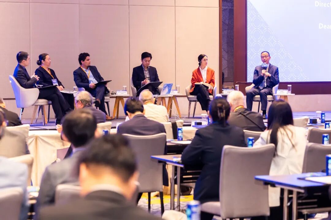 ▲国际古迹遗址理事会共享遗产委员会主席、建筑师方丽珊Maria José Do Carmo De Freitas,国际博物馆协会执委、中国博物馆协会副理事长赵丰,国家文物局考古研究中心副主任孙键,加拿大卡尔顿大学教授、联合国教科文组织“世界遗产保护数字孪生教席”共同主席马里奥・桑塔纳・昆特罗 Mario Santana Quintero,故宫博物院文物保护标准化研究所副主任刘建宇,浙江理工大学致远杰出教授周暘