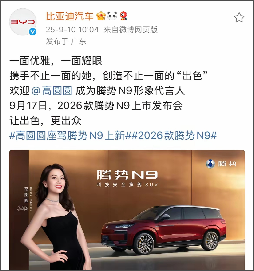 值得肯定的是,比亚迪今年来正积极尝试转变:从过去极少启用明星代言,到为仰望、腾势引入潘展乐、高圆圆等兼具影响力与质感的代言人/形象大使,并通过曝光俞敏洪、曹德旺、何猷君等知名企业家车主,有意识地塑造高端用户群像。