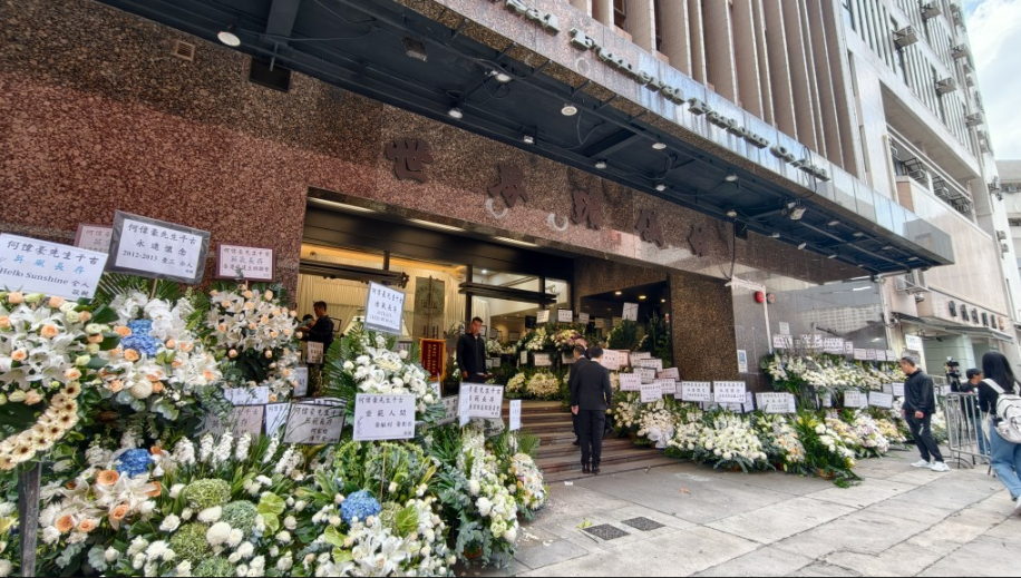 宏福苑五级大火惨剧,酿成至少160人死亡,当中包括救火期间殉职消防队目(追授)何伟豪。消防处明日(12月19日)将为何伟豪举行最高荣誉丧礼,而告别礼则于今日(12月18日)下午5时起举行,在红磡世界殡仪馆世界堂以道教形式设灵。灵堂内,中央摆放了何伟豪的遗照及“浩气长存”四个大字,四周则被挚亲的花牌簇拥。未婚妻Kiki花牌上写有“伟豪挚爱仙游,痛彻心扉,不思量,自难忘”,教人心酸。