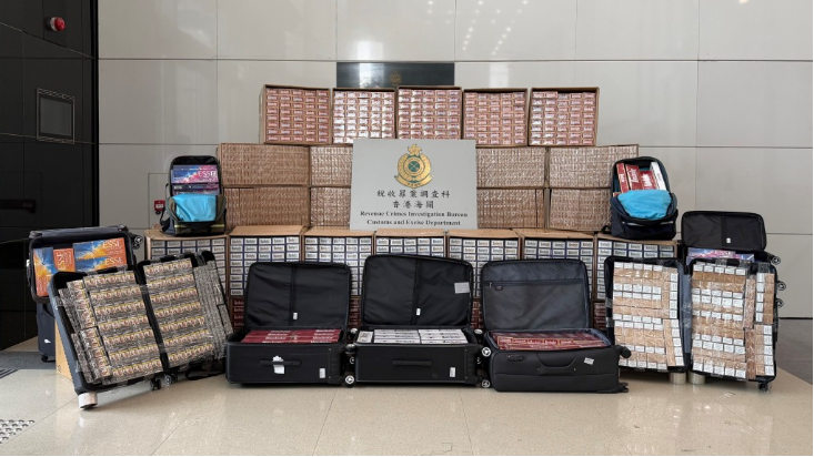 香港海关于9月至12月执法,打击航空旅客走私香烟及捣破相关私烟贮存仓库,成功瓦解一个利用航空旅客(俗称“飞机猪”)走私香烟的跨国犯罪集团,检获共约1164万支私烟,及约140万件另类吸烟产品,共约值5650万元(港元,下同),私烟应课税值约3850万元,拘捕61名涉案人士。