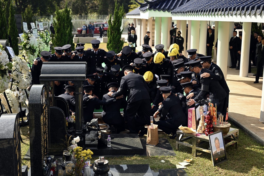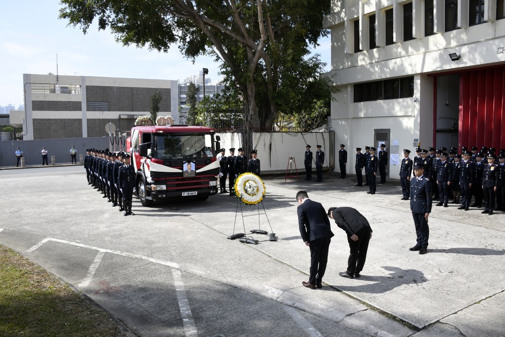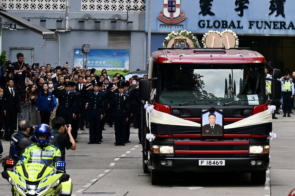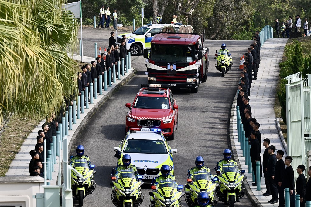 大埔宏福苑惊天大火,消防队目(追授)何伟豪英勇殉职,消防处今(19日)在红磡世界殡仪馆举行最高荣誉丧礼,多名政府高官、政商名人及消防处高层出席,大殓仪式过后,灵车将途经宏福苑火场,生前驻守的的沙田消防局,让大众向救火英雄作最后道别,何伟豪遗体将长眠浩园。