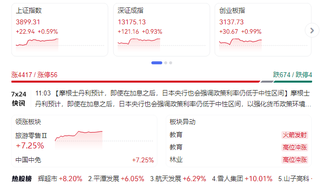 12月19日消息,早盘三大股指震荡走强,创指涨近1%。截至收盘,沪指报3899.31点,涨0.59%;深证成指报13175.13点,涨0.93%;创指报3137.73点,涨0.99%。