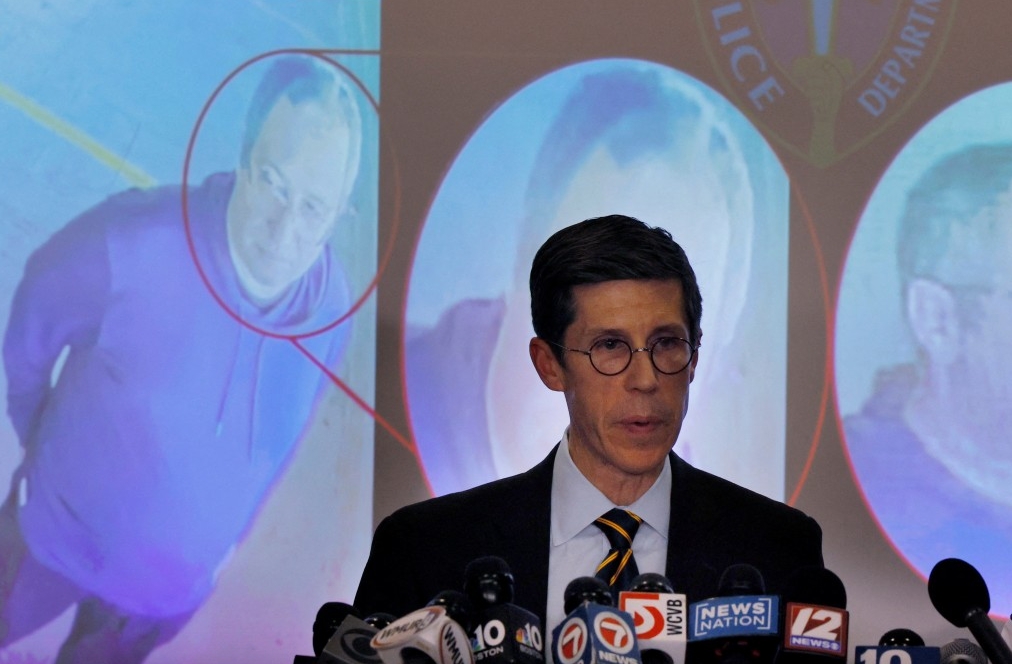 ▲普罗维登斯市长斯米利宣布布朗大学枪击案中枪手瓦伦特(背后图片)已经身亡。路透社