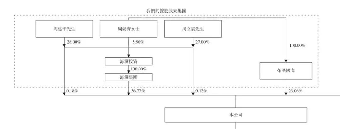 截止递表港交所,海澜之家由海澜集团、荣基国际、周建平、周立宸分别持有36.77%、23.06%、0.18%、0.12%。