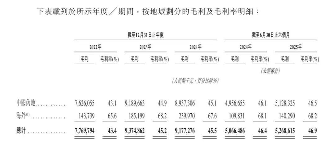 2022年-2025年上半年,公司内地门店的平均售价为240.1元、261.5元、251.2元、253.2元,海外门店的平均售价为168.5元、179.2元、186.2元及183.7元。