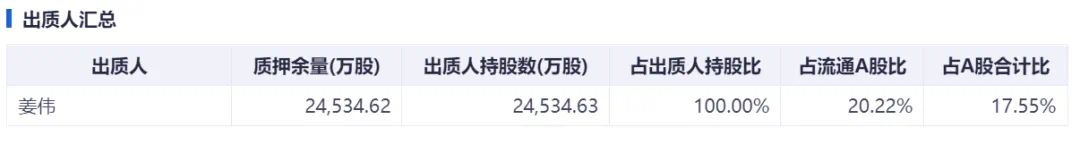 截至三季度末,姜伟持有贵州百灵2.45亿股,持股比例17.55%。值得注意的是,他所持有的全部股份都已质押。