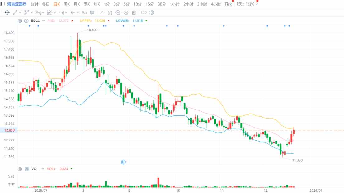 从二级市场表现来看,12月12日,海吉亚医疗盘中最低价触及今年年内低点11.33港元。此时,公司股价已出现远离上方5日均线继续下跌的趋势。在此背景下,公司在股价触底的第二个交易日盘后便宣布回购,显然在短期内扭转了持续低落的市场情绪。