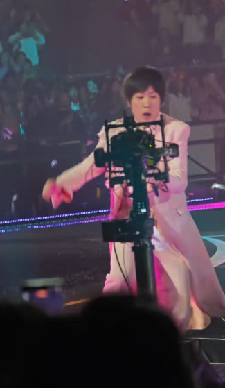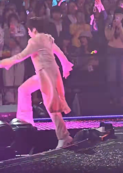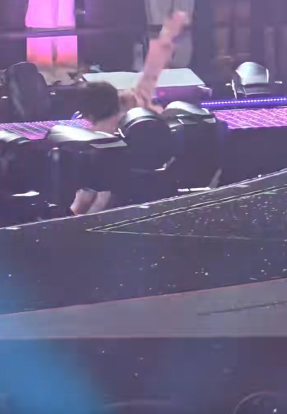 根据网上流传现场多个角度的影片可见,事发时阿信身穿一套粉色西装,正投入地在舞台上走动,与观众互动。当他行至舞台一侧时,疑似没有注意到舞台边缘的空隙,一步踏空后整个人瞬间往下坠落,消失在舞台下方。突如其来的意外让现场气氛瞬间凝结,随即爆出海啸般的惊呼与尖叫声,场面一度混乱。