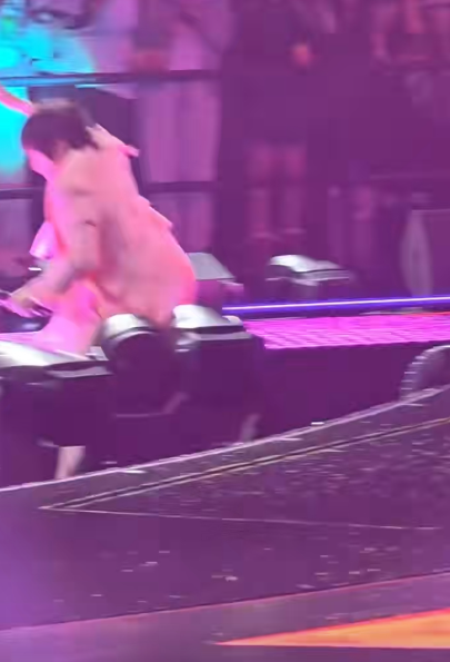 ▲他们合体演唱期间,阿信不慎从舞台边缘堕下。