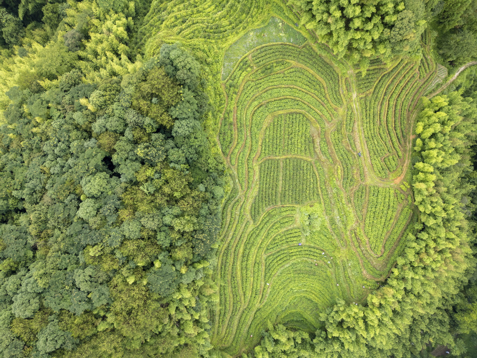 ▲翠绿的茶垄随着高低起伏的山势绵延开来。广州日报新花城