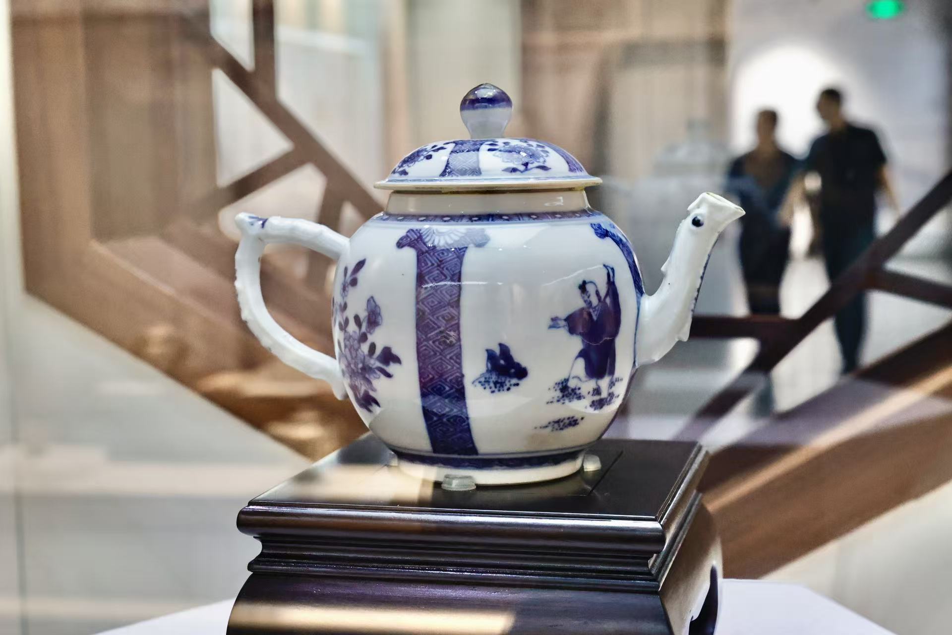 ▲清代乾隆期青花开光人物花卉纹执壶 广州日报