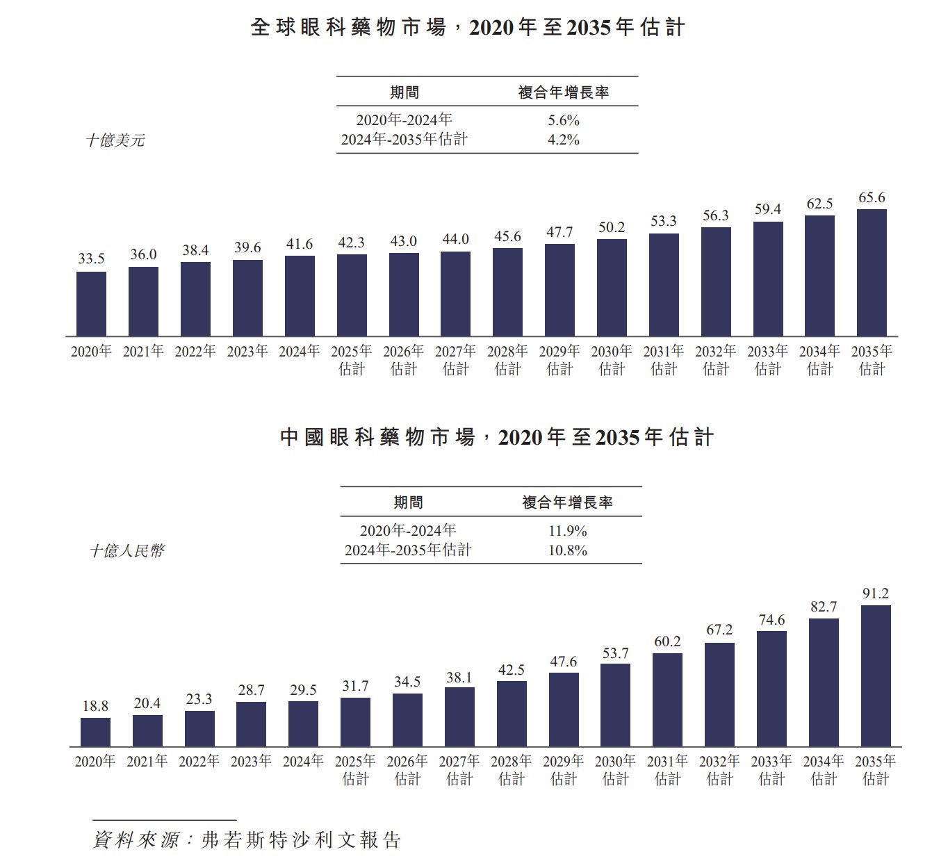 全球眼科药物市场从2020年的335亿美元增长至2024年的416亿美元,复合年增长率为5.6%。预计从2024年至2035年将以4.2%的复合年增长率持续增长,并于2035年达到656亿美元的规模。相比之下,中国眼科药物市场的增长速度更快,并预计将保持其增长势头。中国眼科药物市场由2020年的人民币188亿元增长至2024年的人民币295亿元,2020年至2024年的复合年增长率为11.9%。预计该市场于2035年将达到人民币912亿元,2024年至2035年的复合年增长率为10.8%。