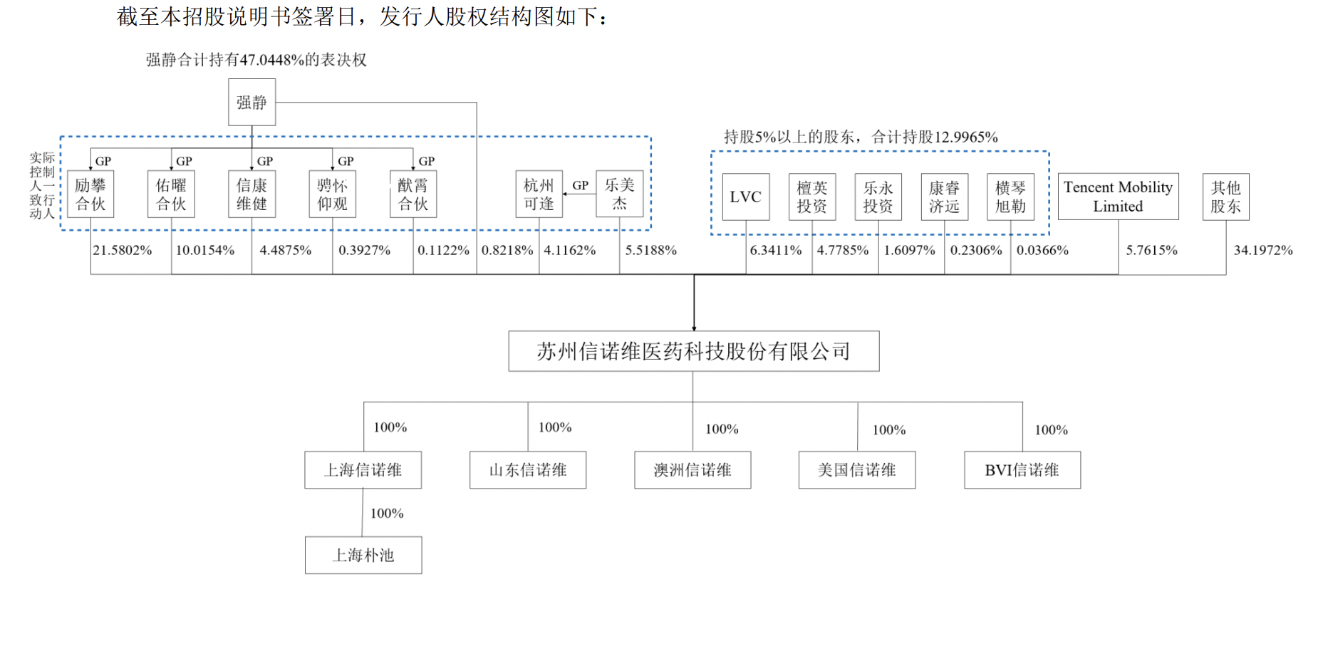 截至本招股书签署日,强静直接持有公司0.82%的股份;通过担任励攀合伙、佑曜合伙、信康维健、骋怀仰观及猷霄合伙的执行事务合伙人分别控制信诺维21.58%、10.02%、4.49%、0.39%及0.11%的股份。强静合计可控制的表决权比例为37.41%。