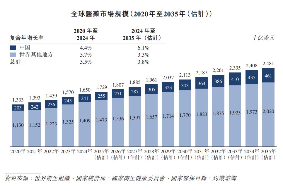 在医疗需求增长、慢性疾病负担加重,以及药物创新与获取持续改善的支持下, 2020年至2024年,全球及中国医药市场持续扩张,并预计将持续稳步增长至2035年。随着两个市场进一步朝向更高价值的疗法与治疗更普及的方向演进,长期增长前景依然具韧性。