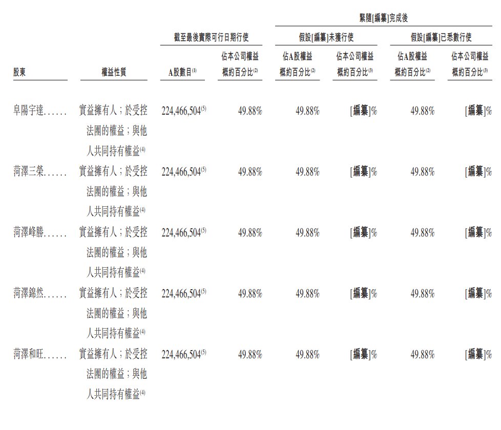 截至最后实际可行日期,一致行动人士合共于公司218,947,562股A股拥有权益,占公司约49.26%表决权(不包括5,518,942股库存A股)。一致行动人士于[编纂]完成后将构成控股股东。