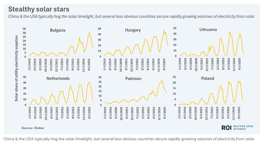 2025年,保加利亚、巴基斯坦、匈牙利、波兰等国太阳能发电占比多次突破20%,在降低用电成本的同时有效减少了碳排放。