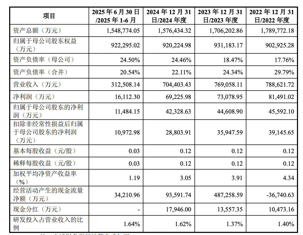 2022年-2024年及2025年上半年,中盐股份分别实现营业收入78.86亿元、76.91亿元、70.44亿元和31.25亿元,扣除非经常性损益后归属于母公司股东的净利润3.91亿元、3.59亿元、2.88亿元和1.1亿元,业绩有所下滑。综合毛利率分别为34.00%、31.19%、32.06%和30.38%。