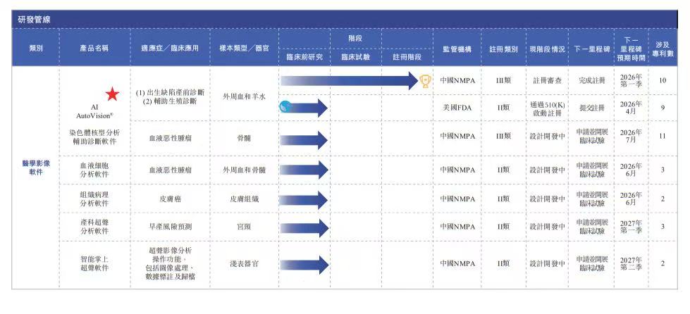 招股书提到,该公司开发出多元化的产品组合,可有效提升诊断效率及服务质量,其中包括:(i)六款医学影像软件产品,包括处于注册阶段的核心产品AI AutoVision®、一款商业化产品AutoVision®,以及四款临床前阶段的候选产品;(ii)三款商业化医疗设备;及(iii)四款主要试剂及耗材。此外,德适生物提供技术许可业务,以满足各类医疗机构、学术科研机构及区域医疗机构的广泛需求。