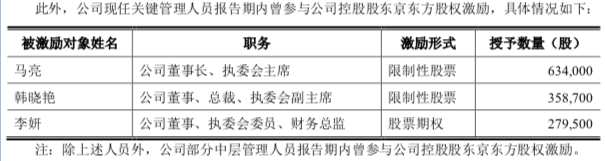 报告期内,马亮、韩晓艳曾参与公司控股股东京东方股权激励,获限制性股票,分别为634,000股、358,700股。