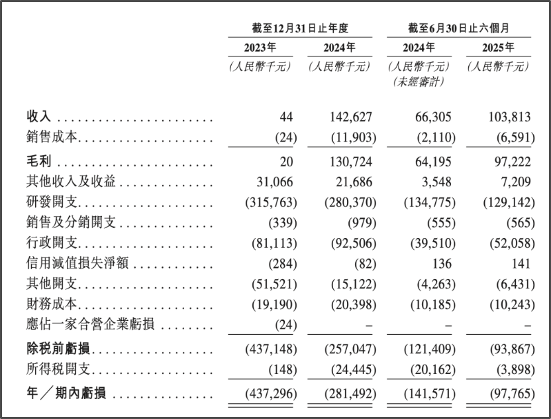2023年至2025年上半年,瑞博生物营收分别为44万元、1.43亿元、1.03亿元,收入增长主要得益于2023年12月公司与齐鲁制药、勃林格殷格翰合作带来的许可、合作收入陆续到账,但公司同期净利润一直处于亏损状态,分别为-4.37亿元、-2.82亿元、-0.98亿元,累计亏损8.17亿元,不过已有收窄态势。