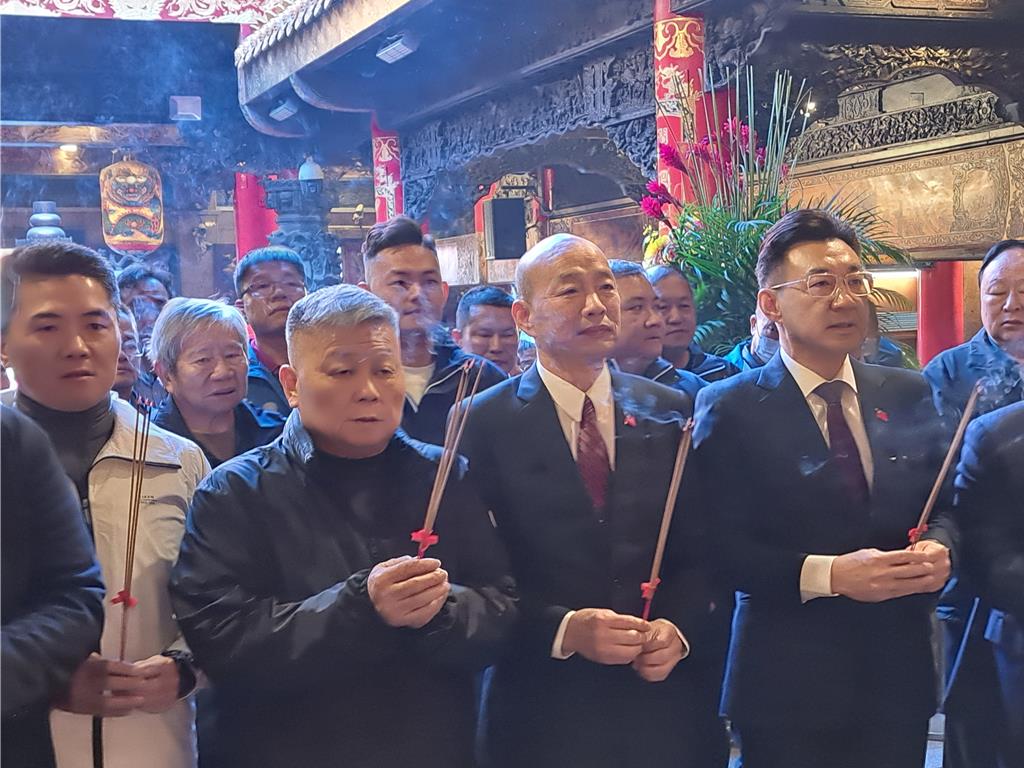 ▲韩国瑜、江启臣10日赴台中市大甲镇澜宫一同发新春联。