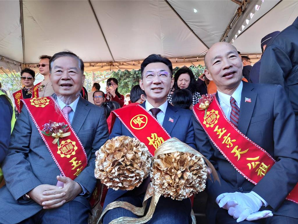 台中市民政局今(10日)于玉京天公祖总庙举行龙凤呈瑞龙柱完成大典,清水女儿杨琼璎广邀蓝营大咖出席,与会者包括郑丽文、台中市长卢秀燕、韩国瑜、国民党最高顾问王金平、江启臣、国民党团总召傅崐萁及杨琼璎等人,卢秀燕率先到达会场,接续为郑丽文等人,杨立马协助安排入座,3姝共聚一起,频频交头接耳,笑声不断。