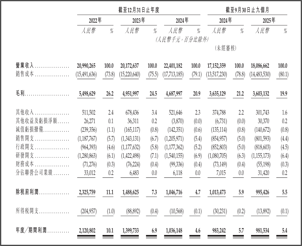 其招股书也显示,视源股份在研发方面的投入从2022年的12.8亿元增加至2024年的15.4亿元。2025年前三季度,视源股份研发开支达到11.55亿元,而同期净利润约为9.82亿元,公司在研发方面的投入已经超过了自身盈利。