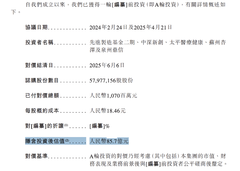 自成立以来,先声再明已完成一轮融资(即A轮投资),其隐含投资后估值为85.7亿元。