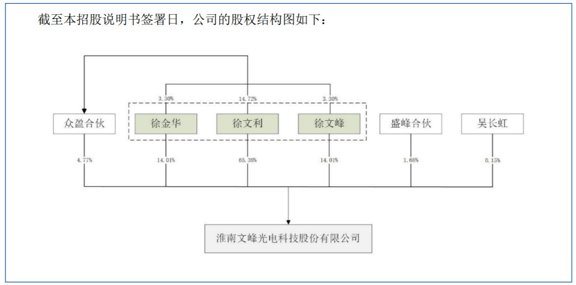 股权方面,徐文利、徐文峰、徐金华系兄弟、兄妹关系,截至本招股说明书签署日,三人分别直接持有公司3922.80万股、840.60万股、840.60万股,合计占公司总股本的93.40%,同时徐文利为公司股东众盈合伙执行事务合伙人,通过众盈合伙能够间接控制公司4.77%的表决权,故徐文利、徐文峰、徐金华共计控制公司98.17%的表决权,对公司股东会的决议具有实质性影响。