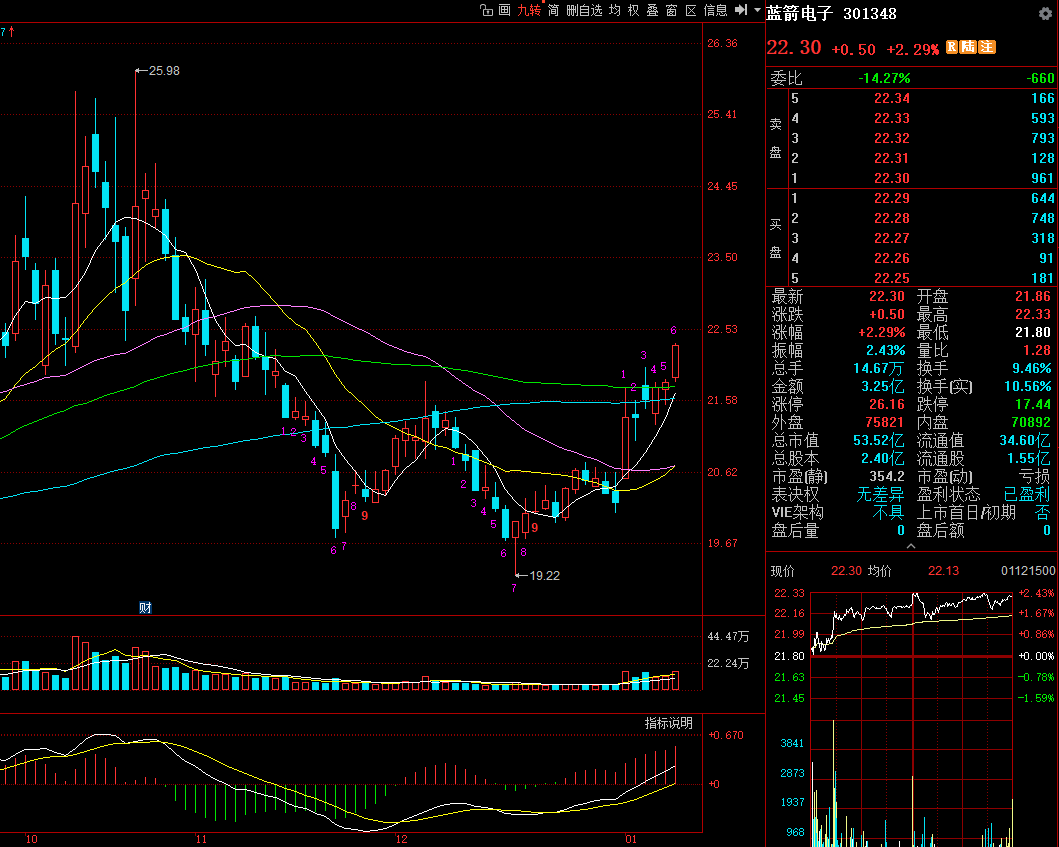 当天,该股收报22.3元,涨2.29%,总市值53.52亿元,换手率9.46%。