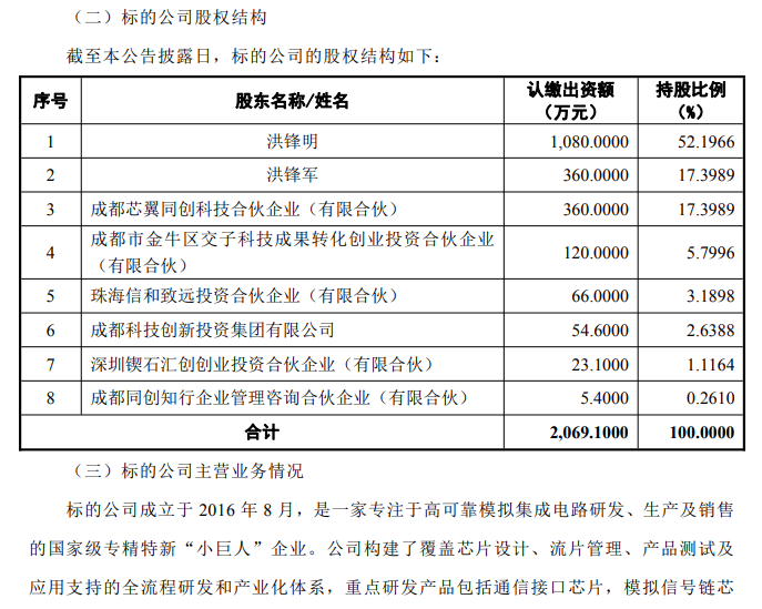 公告显示,本次交易对方为成都芯翼的实际控制人洪锋明、法人代表兼董事长洪锋军,以及成都芯翼同创科技合伙企业(有限合伙)。收购完成后,蓝箭电子将成为成都芯翼的控股股东。