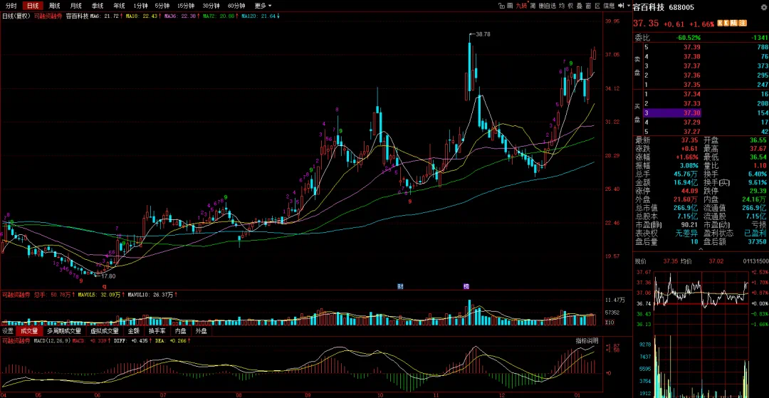 13日,容百科技收报37.35元,涨1.66%,总市值266.9亿元,换手率6.4%。