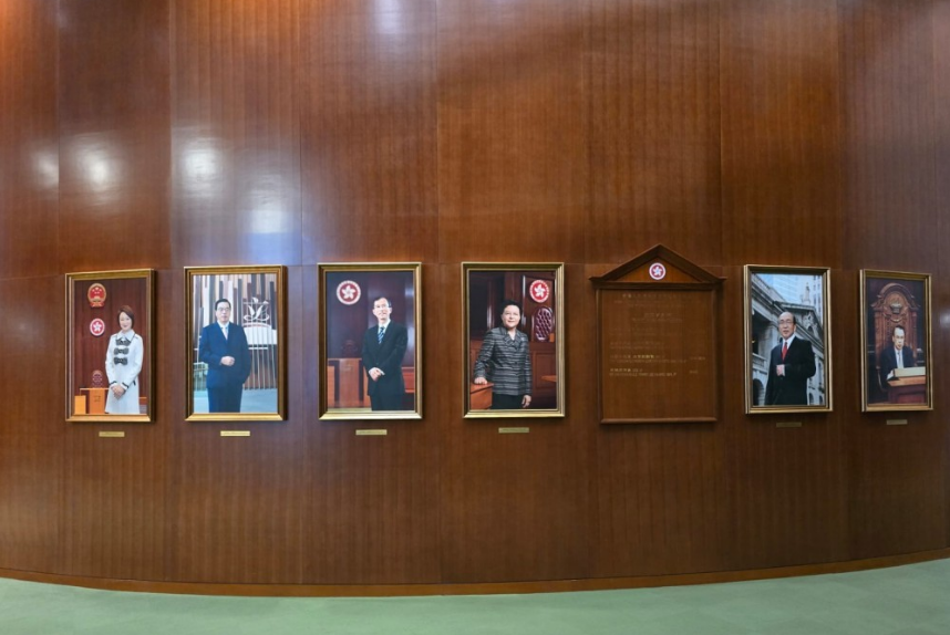 ▲按照一贯传统,立法会一楼俗称“绿地毯”的会议厅外,都会挂上历届主席画像。