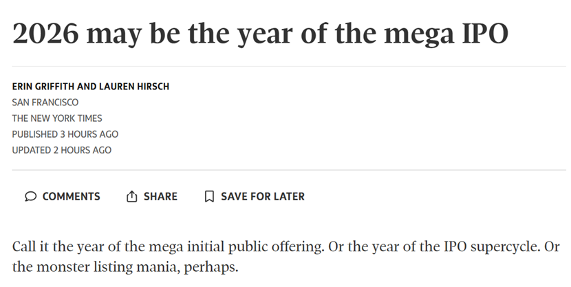 人工智能热潮正进入第四年,尽管泡沫问题日益凸显,但这些上市活动引发了更多的兴奋。摩根士丹利全球股权资本市场联席负责人埃迪·莫洛伊说:“我们将进入一个潜在创纪录的IPO交易规模时期。”并补充道:“我们对这些公司的规模和投资者兴趣充满信心。”