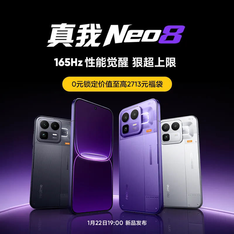 《星岛》了解到,1月22日,realme将发布Neo8系列新品,目前宣传期仍以独立品牌形象示人。