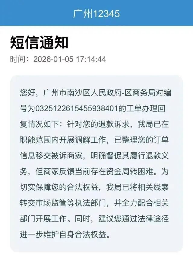 10月,杜女士再次预约保洁时,客服以“人太多”为由拒绝预约。11月,她多次联系不上客服,便到小程序上提出退款要求,对方承诺11月底退款到位,但到期后不仅退款未到账,相关小程序和客服均已无法联系。“我打了广州12345投诉,得到的回复只是‘正在催退款’,没有实质性进展。”无奈之下,杜女士在社交平台上搜索相关信息,才发现有大量消费者遭遇了同样的问题。