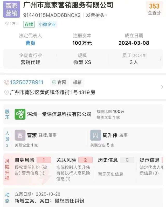 企查查APP显示,该公司于去年10月新增侵权责任纠纷,实际控制人有被执行人高风险信息。截至发稿,涉事公司仍未公开具体的退款进展。