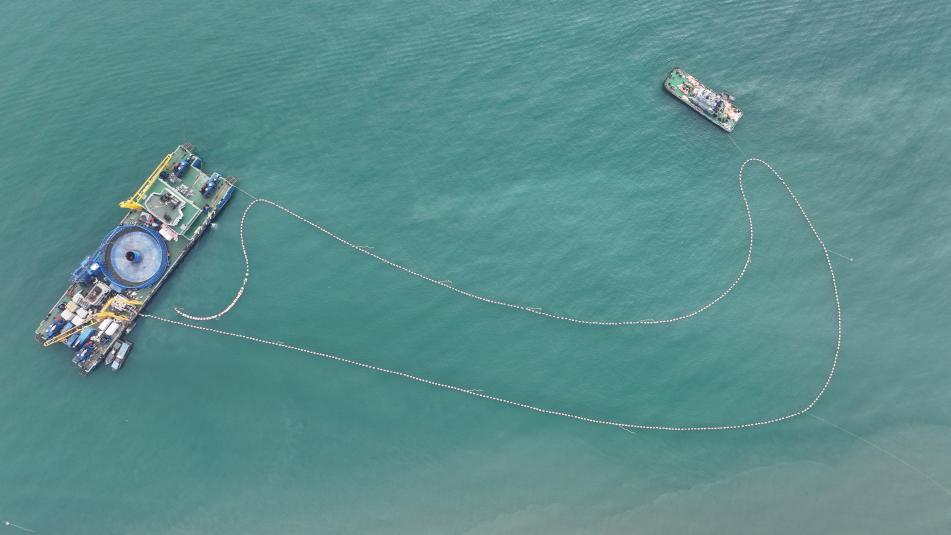 ▲图源:南方电网,220千伏涠洲岛跨海联网工程海缆敷设完成施工