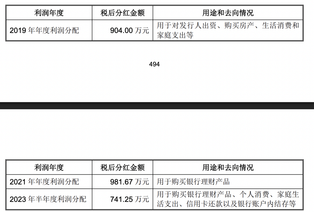 刘宗杰、章芳芳夫妇对公司历次分红款的用途和去向不存在流向公司员工、客户、供应商及其关联方等情形,不存在向他人转付分红款等分红款去向异常的情形。