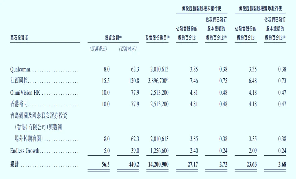 龙旗科技此次引入了诸多实力雄厚的基石投资者,包括高通、豪威集团等产业链企业,以及江西国控、裕同科技、青岛观澜与国泰君安证券、Endless Growth等投资机构。