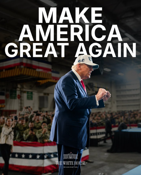 ▲白宫发布的特朗普照片,配上“让美国再次伟大”的斗大标语。X@WhiteHouse