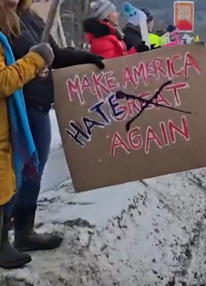 ▲民众怒改特朗普的口号,将“让美国再次伟大”改成“让美国再次憎恨”。 X