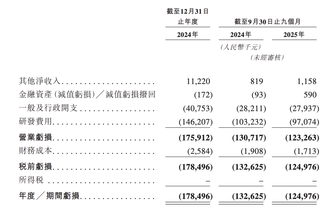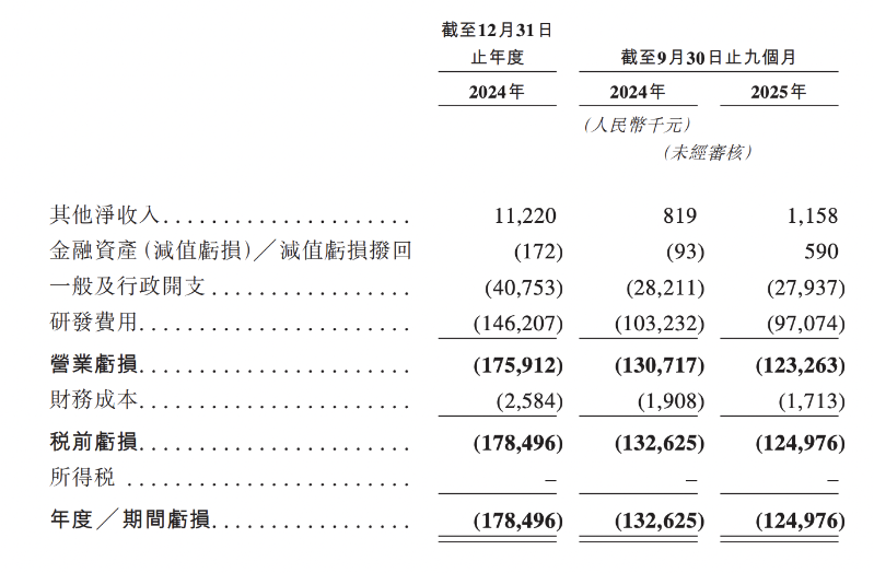 2024年、2025年前9月,普祺医药其他净收入分别为1122万元、115.8万元,年度/期间亏损分别为1.78亿元、1.25亿元。