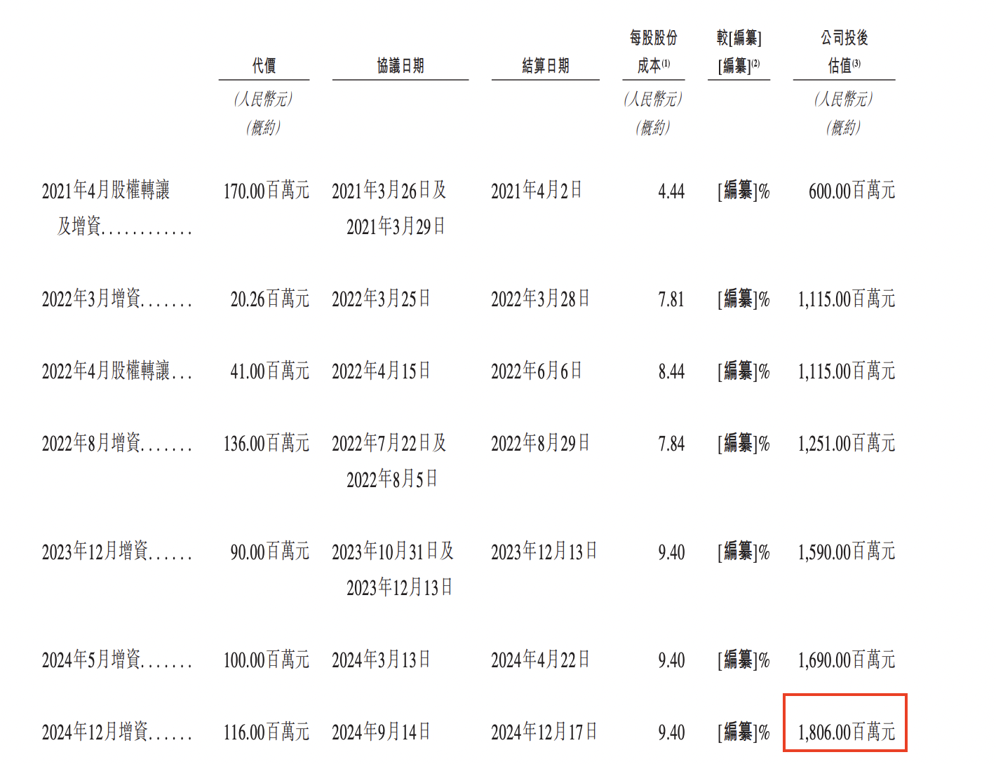 成立以来,普祺医药已完成多轮增资及股权转让。2024年12月,普祺医药完成最新一轮增资,投后估值为18.06亿元。