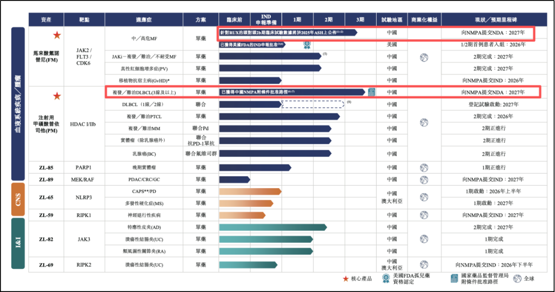 截至递交IPO申请前,赜灵生物的管线包括两种核心产品——马来酸氟诺替尼及注射用甲磺酸普依司他,后者就是此前贵州百灵技术增资的一款产品。另外还有两种临床阶段候选药物及4种临床前候选药物。