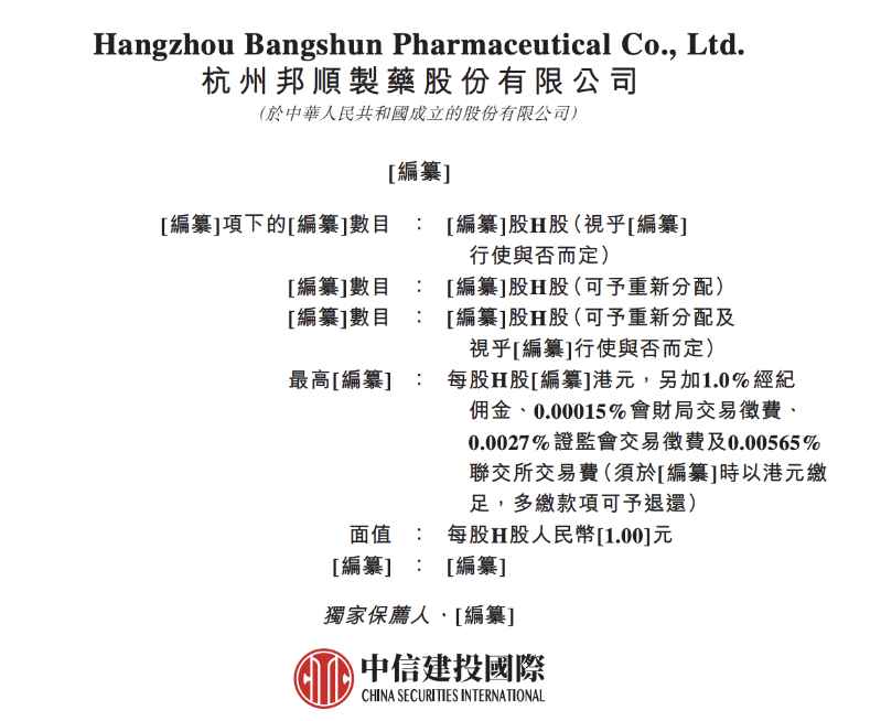 1月22日,杭州邦顺制药股份有限公司(以下简称:邦顺制药)向港交所主板递交上市申请书,中信建投国际为独家保荐人。