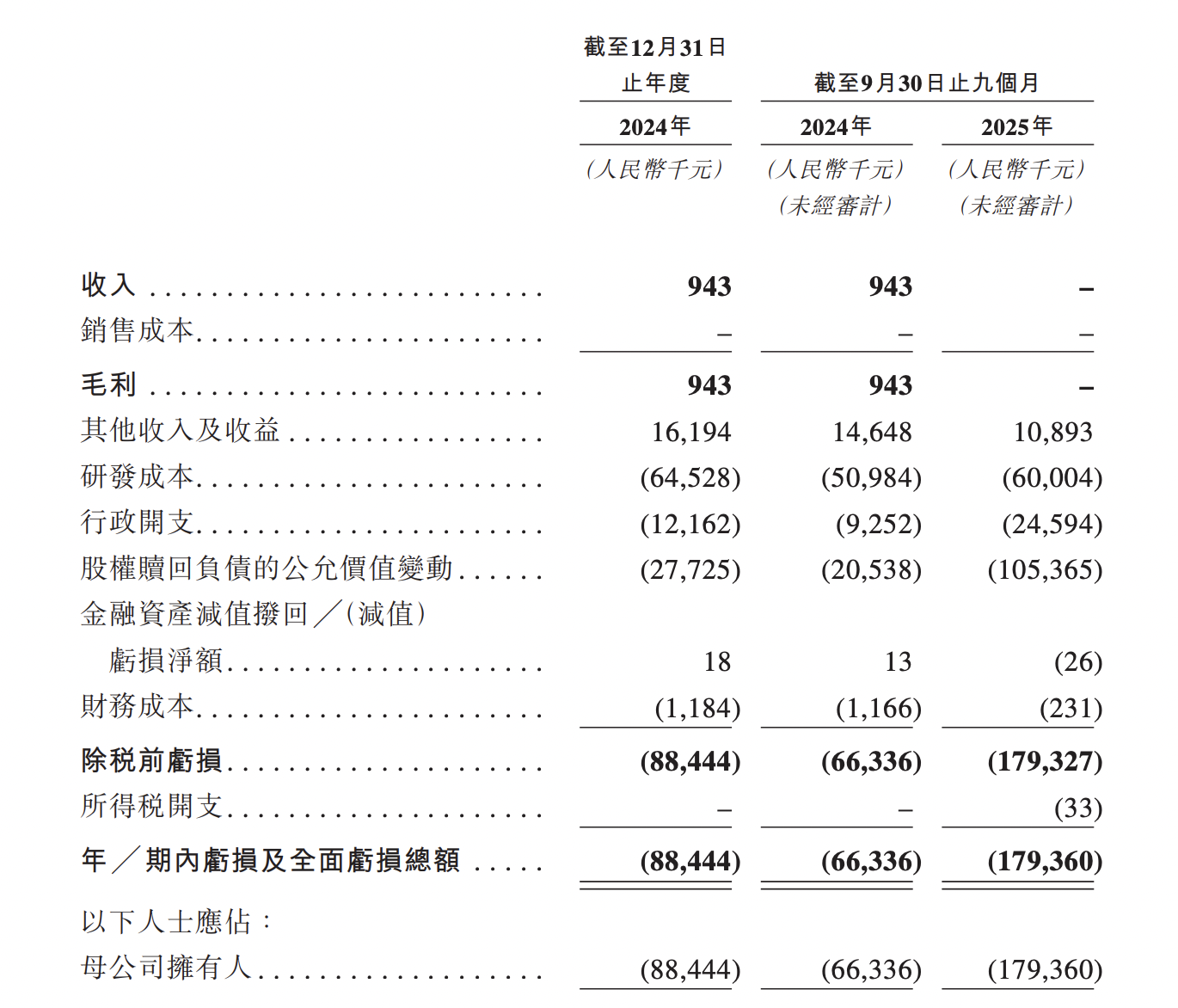 于往绩记录期间,邦顺制药尚无产品获批准进行商业销售,其收入主要源自临床前项目相关的技术转让。2024年、2025年前9月,公司的收入分别为94.3万元、及0元,年╱期内亏损及全面亏损总额分别为8844.4万元、1.79亿元。