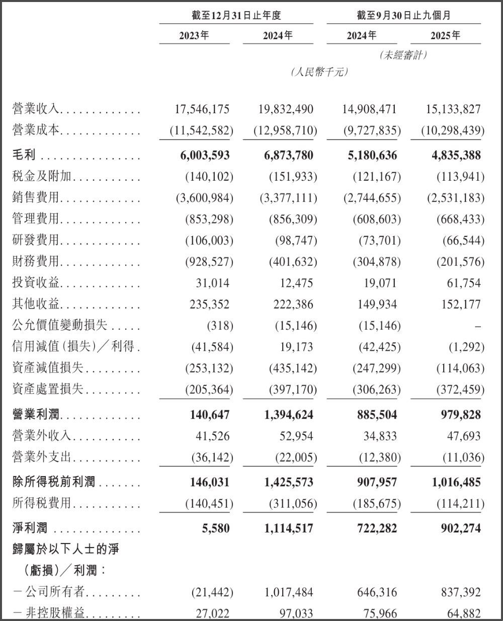 财务数据方面,招股书显示,该公司营收从2023年的175.46亿元增至2024年的198.32亿元,同比增长13.0%;截至2025年9月30日止9个月,营收为151.34亿元,同比增长1.5%;归母净利润从2023年的-0.21亿元增长至2024年的10.17亿元,2025年前9个月进一步达到8.37亿元。