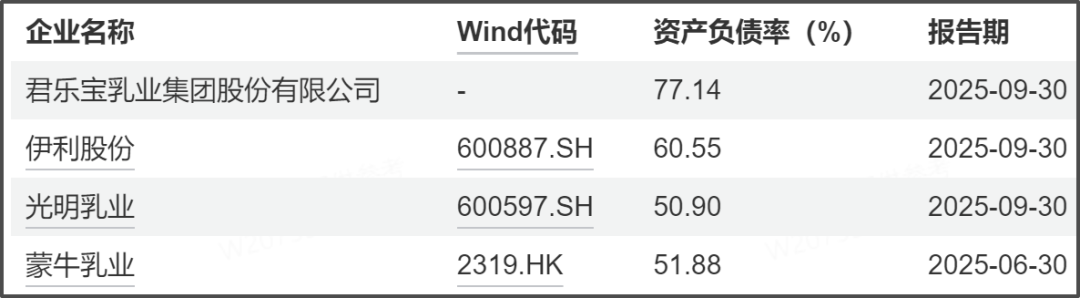 ▲君乐宝与同行负债率对比,资料来源:wind